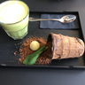 Очень красивая и быстрая подача, десерт вкусный, напиток показался слишком зеленоватый, мне кажется сет на любителя!